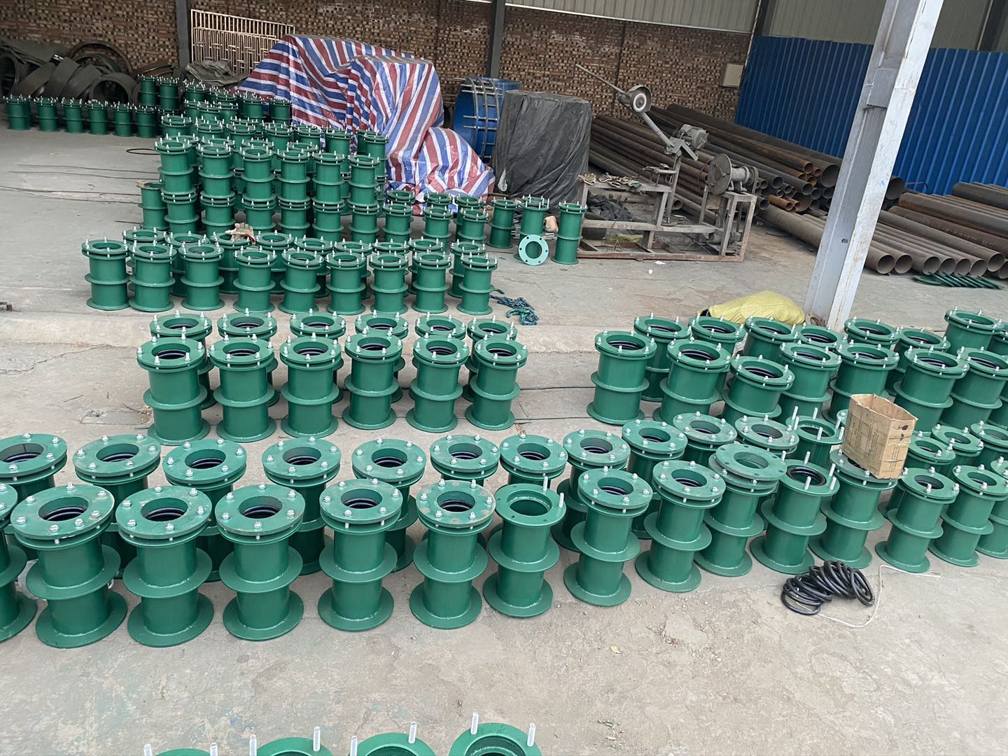 02s404防水套管安裝在水庫排水管線。安裝柔性防水套管時,將加工好的防水套管在澆注混凝土前按設(shè)計(jì)部位固定好,校對合格后一次澆注,待管道安裝完畢后填料塞緊、搗實(shí)。